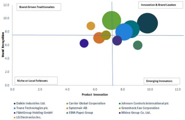 換気システム市場は分散型構造を維持しており、2024年には上位10社で世界売上の24.4%を占めた。主要企業には以下が含まれる: