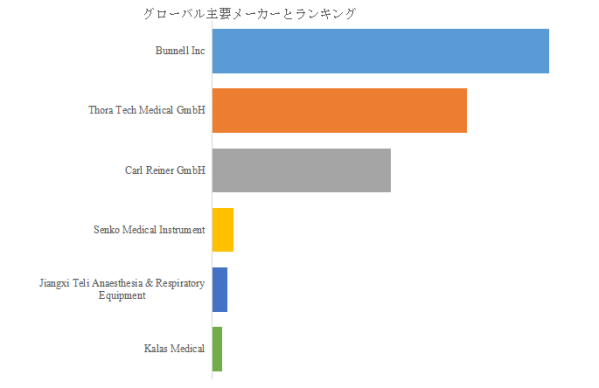 高周波ジェットベンチレーター市場は、技術門?が高く、世界的には少数の専門メーカーが中心となる寡占構造が形成されている。LP Informationのデータによると、主要企業にはBunnell Inc、Thora Tech Medical GmbH、Carl Reiner GmbHが名を連ね、2024年時点で世界のトップ3企業が売上ベースで約84%の市場シェアを占めていた。これらの企業は、新生児・小児向けの高度換気技術、安全性設計、臨床現場での信頼性に強みを持ち、医療機関との協業や技術改善を絶えず進めている。製品の高精度化、操作性向上、コンパクト化といった技術進展も、これらリーディング企業が主導している分野である。寡占市場であるがゆえに、ブランド信頼性、アフターサービス、臨床実績が導入判断の重要な基準となっており、企業間の競争は“精密化”と“医療現場の課題解決力”に焦点が移っている。