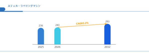 Global reports調査チームの最新レポート「グローバルステッカーラベリングマシン市場規模、主要企業シェア、ランキング分析レポート【2026年版】」によると、グローバルステッカーラベリングマシン市場は2025年の236百万米ドルから2032年には293百万米ドルに成長し、2026年の市場規模は約243百万米ドルと推計されており、2026-2032年のCAGR(年間成長率)が3.2%に達すると予測されている。