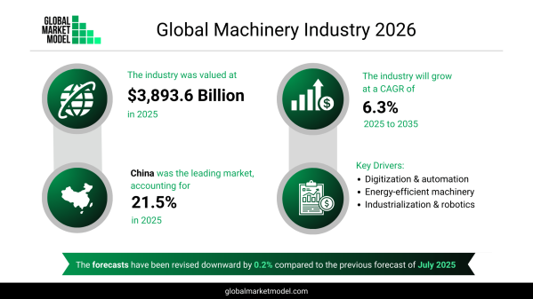 2025年において、世界の機械市場は3兆8,936億ドル規模と評価されており、2035年まで年平均成長率6.3%で成長すると予測されています。この成長軌道は、広範な産業ブームではなく、選択的な近代化を反映しています。