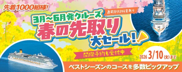 3月~6月発クルーズ春の先取り大セール!