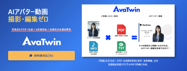 「 AvaTwin 」は、写真と音声データからアバターを生成し、投影資料と台本を組み合わせてプレゼンテーション動画を作成するサービスです。