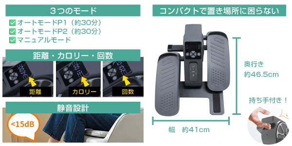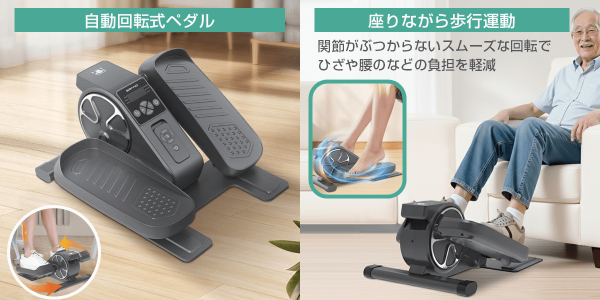 ◎ 自動回転式ペダル :力を使わず、足を乗せるだけで歩行運動