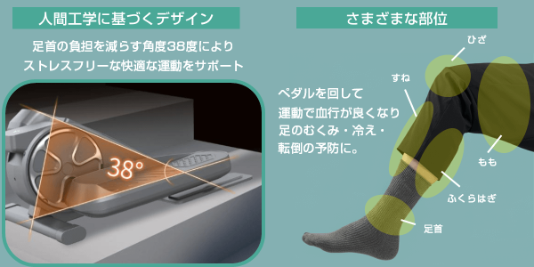 ◎ 人間工学デザイン :足首の負担を減らす角度38度により、ストレスフリーな快適な運動をサポート