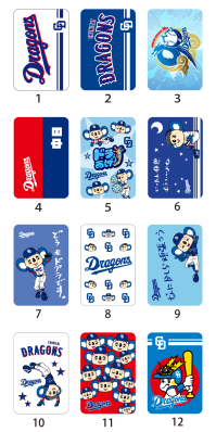 ドアラやドラゴンズ坊やなど中日ドラゴンズのマスコットキャラクターがプリントされています。