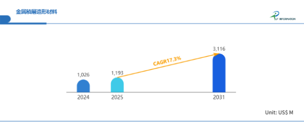 LP Information調査チームの最新レポートである「世界金属積層造形材料市場の成長予測2026~2032」(https://www.lpinformation.jp/reports/593484/metal-additive-manufacturing-material)によると、2025年から2031年の予測期間中のCAGRが17.3%で、2031年までにグローバル金属積層造形材料市場規模は31.16億米ドルに達すると予測されている。