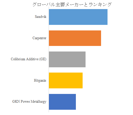 LP Informationのトップ企業研究センターによると、金属積層造形材料の世界的な主要製造業者には、Sandvik、Carpenter、Colibrium Additive (GE)、Höganäs、GKN Power Metallurgyなどが含まれている。