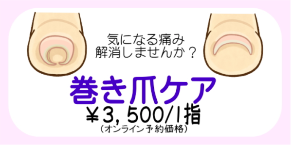 「巻き爪ケアコース」のご案内をしております