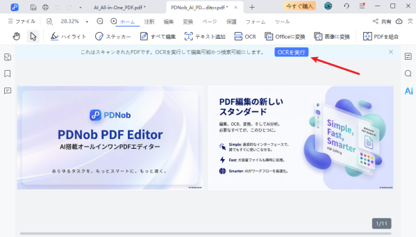 Step 3: エクスポートしたファイルをTenorshare PDNobに取り込み、OCR機能を使って編集可能なデータへ変換します。