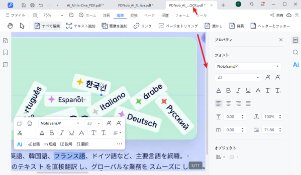 または、Tenorshare PDNob上で直接編集を行い、そのままレイアウトやテキストの微調整を行うことも可能です。