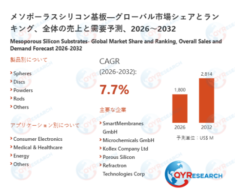 QY Research株式会社(東京都中央区)は、「メソポーラスシリコン基板―グローバル市場シェアとランキング、全体の売上と需要予測、2026~2032」の最新レポートを発表しました。