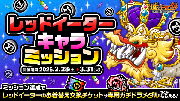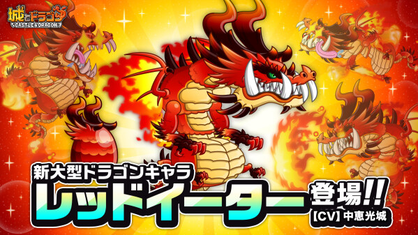 2月28日(土)より『城ドラ』11周年を祝う新大型ドラゴンキャラ“レッドイーター(CV:中恵光城)”がアバたまに登場しました。