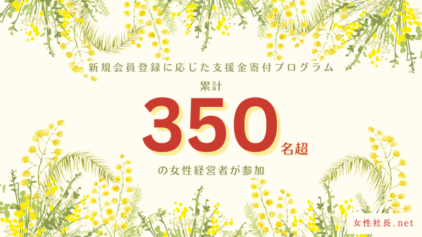 2023年3月より、「女性社長.net」では、新規会員登録数に応じて国際NGOへ支援金を寄付しています。女性経営者・事業主向けのデータベースサイト女性社長.netへの会員登録(無料)をすると、事業継続に役立つ情報が届きます。