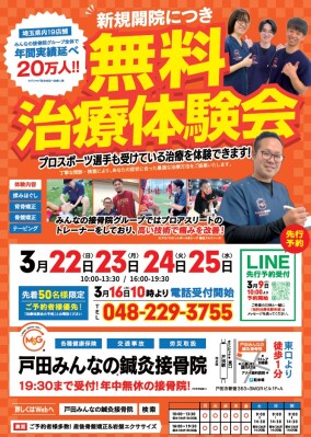 戸田みんなの鍼灸接骨院がグランドオープンします。