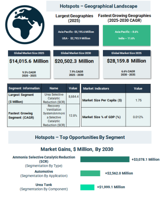 これらの構成要素の中では、尿素貯蔵装置の分野が最も速く成長すると予測されており、2025年から2030年の年平均成長率は11.0%と見込まれている。
