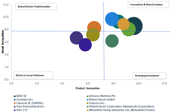 市場に参入する企業は、排出制御技術の高度化と製品ポートフォリオの拡大に重点を置いている。