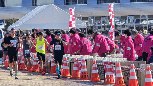 また、フルマラソンの25.2km地点(小名浜港付近)の第6給水所を「クリナップ給水所」として、当社社員及び家族など計36名が、ランナーのみなさんを給水・給食と声援でサポートしました。