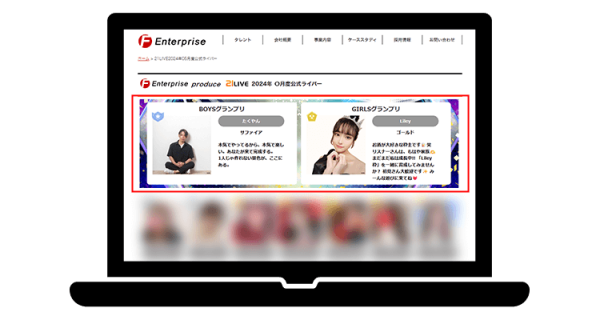 ランキング1位のライバーは、「F.Enterprise」公式サイトでのバナー掲載や「公式ライバーになろう!」ページでの特別掲載など、公式モデルとして活躍できるチャンスも!