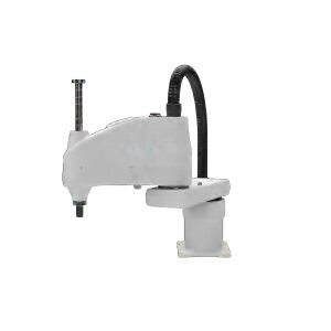 4軸(スカラ)産業用ロボットとは、水平多関節構造を採用した産業用ロボットの一種であり、主にX・Y方向の平面動作、Z軸の上下動作、および回転軸の合計4軸で構成される自動化装置である。SCARA(Selective Compliance Assembly Robot Arm)の名称が示す通り、水平方向には柔軟性を持ちながら垂直方向には高い剛性を持つ構造が特徴で、精密組立、電子部品実装、搬送、ピックアンドプレースなどの高速・高精度作業に適している。