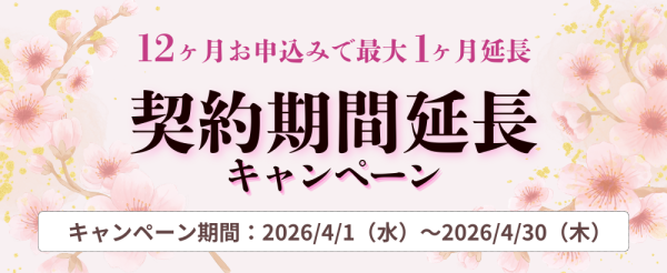 →上記サービスを契約期間12ヶ月間でご契約いただくと、契約期間を1ヶ月間延長!