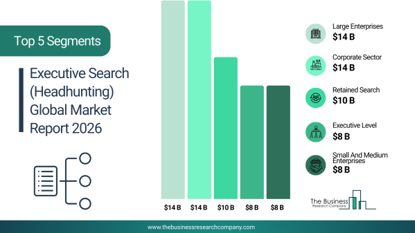 エグゼクティブサーチ(ヘッドハンティング)市場では、複数の採用分野において重要な成長機会が見込まれている。企業向けリーダー採用サービス、リテインドサーチ契約、大企業向け採用案件、最高経営幹部採用、技術分野の採用が2030年までの成長を牽引すると予測されている。