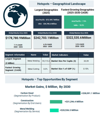構造用鋼材加工市場では、複数の分野で将来の成長機会が生まれると予測されている。金属溶接サービス分野だけでも2030年までに年間205億3,630万ドル以上の追加収益を生み出すと見込まれている。
