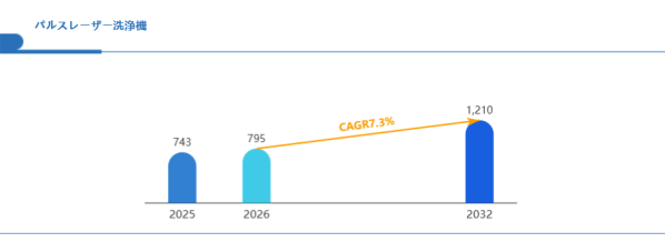 Global reports調査チームの最新レポート「グローバルパルスレーザー洗浄機市場規模、主要企業シェア、ランキング分析レポート【2026年版】」によると、グローバルパルスレーザー洗浄機市場は2025年の743百万米ドルから2032年には1210百万米ドルに成長し、2026年の市場規模は約795百万米ドルと推計されており、2026-2032年のCAGR(年間成長率)が7.3%に達すると予測されている。