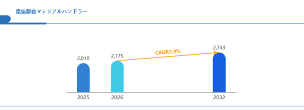 Global reports調査チームの最新レポート「グローバル電気駆動マテリアルハンドラー市場規模、主要企業シェア、ランキング分析レポート【2026年版】」によると、グローバル電気駆動マテリアルハンドラー市場は2025年の2010百万米ドルから2032年には2743百万米ドルに成長し、2026年の市場規模は約2175百万米ドルと推計されており、2026-2032年のCAGR(年間成長率)が3.9%に達すると予測されている。