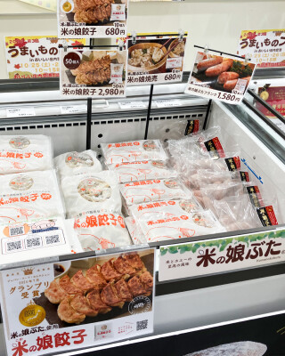 「米の娘餃子」は、「米の娘ぶた」と金山町特産品のニラを使用した、豚肉と野菜のうまみを味わえる当社の人気No.1商品です。自社工場から一度も冷凍せず生のまま直送された新鮮な豚肉を使用しており、肉のうまみと香りをアップさせました。