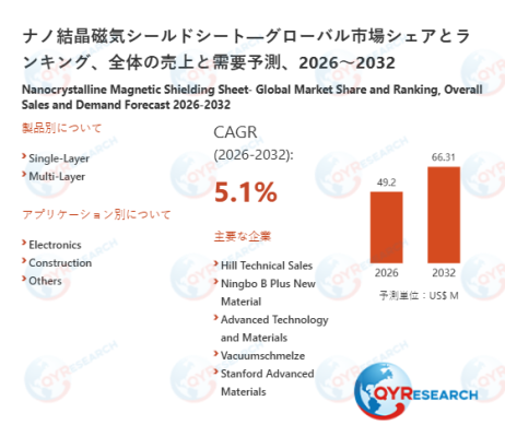 QY Research株式会社(東京都中央区)は、「ナノ結晶磁気シールドシート―グローバル市場シェアとランキング、全体の売上と需要予測、2026~2032」の最新レポートを発表しました。