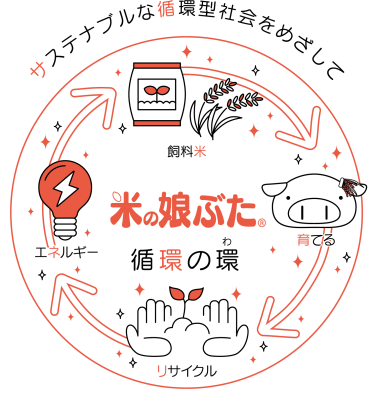 ブランド豚「米の娘ぶた(R)」の生産から加工・販売までを自社で行う一貫生産体制を実践し、徹底した衛生管理のもとで生産された商品を飲食店や量販店に直接納品しています。また、地元金山町産の飼料用米や工場の食品ロスを豚の飼料に配合し、豚の排泄物を堆肥化することで地域資源を活用した循環型農業に取り組んでいます。