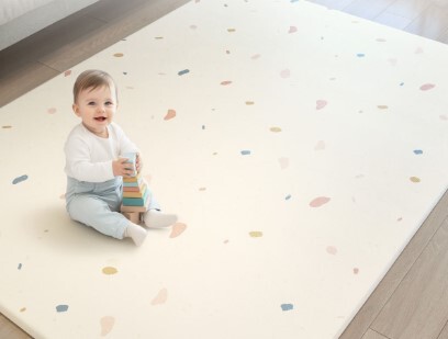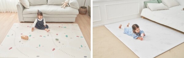 今回のリニューアルでは、新カラーの「テラゾ&ライトベージュ」が登場。やさしい色合いとさりげないデザインで、リビングや子ども部屋など、さまざまな空間に自然になじみます。リバーシブル設計となっており、シーンやインテリアに合わせて使い分けが可能です。