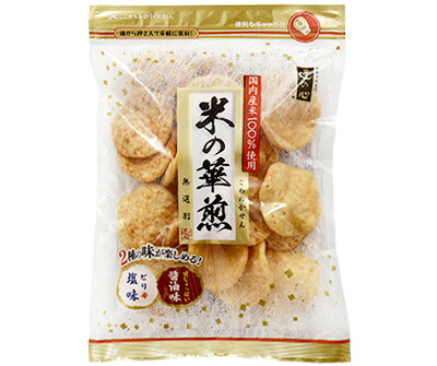 『米の華煎 無選別』は、国内産うるち米100%使用の生地を丁寧に揚げ、パリッとサクサクとした軽い食感に仕上げた揚げ煎餅です。