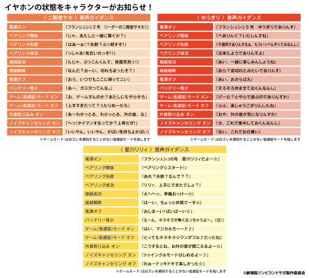 音声ガイダンスは「二階堂サキ (CV:田野アサミ)」、「ゆうぎり (CV:衣川里佳)」、「星川リリィ (CV:田中美海)」の録り下ろしボイスを搭載。電源オンやオフ、ペアリング時やタップ音等、各モデル全13ワードの豪華内容となっております。