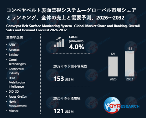 QY Research株式会社(東京都中央区)は、「コンベヤベルト表面監視システム―グローバル市場シェアとランキング、全体の売上と需要予測、2026~2032」の最新レポートを発表しました。