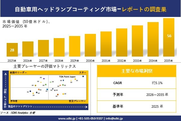 経営層の意思決定に役立つ戦略的洞察を得るため、自動車用ヘッドランプコーティング市場調査レポートの試読版をご請求ください: https://www.sdki.jp/trial-reading-request-590642161