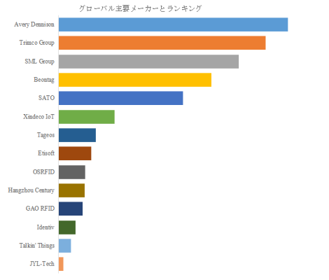 LP Information のトップ企業研究センターによると、環境 RFID タグの世界的主要製造業者には、Avery Dennison、Trimco Group、SML Group、Beontag、SATO、Xindeco IoT などが含まれる。2025 年時点で世界トップ 5 企業の市場シェアは合計で約 55% を占め、トップ 10 企業では約 78% となっており、市場は中程度に集中したオリゴポリ構造を呈している。Avery Dennison は 14.13% の最大シェアを占め、素材開発力とグローバルな販売網で競争優位性を確立している。