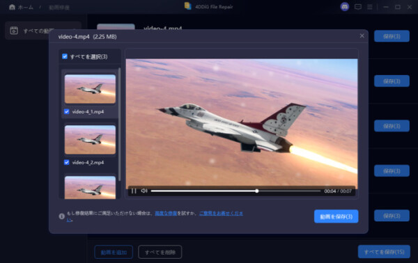 手順3.動画の修復が完了すると、修復された動画をプレビューして、指定した場所に保存できます。