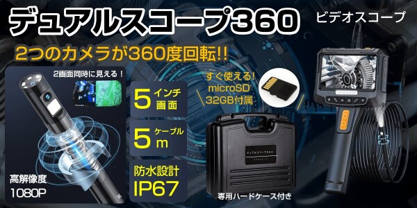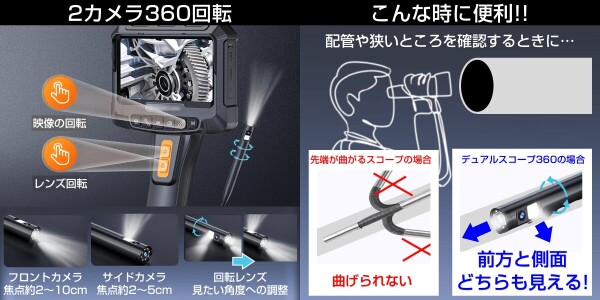 【360度回転】:ボタン操作で回転し、カメラで見えにくい角度まで確認可能