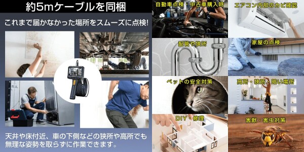 【高所・狭所・暗い場所】手の届かない、目の届きにくい場所の確認に最適。