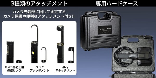 【LEDライト】:高輝度ライトを搭載し、光が届かない暗所も鮮明に撮影。