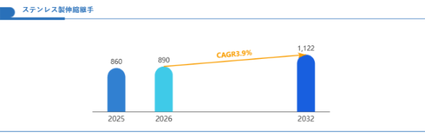 Global Reports調査チームの最新レポート「グローバルステンレス製伸縮継手市場規模、主要企業シェア、ランキング分析レポート【2026年版】」によると、ステンレス製伸縮継手市場は、エネルギーインフラ更新や産業設備の高信頼化需要を背景に、安定した拡大局面に入っている。世界のステンレス製伸縮継手市場規模は2025年の8.6億米ドルから2032年には11.22億米ドルへと拡大し、2026~2032年の年平均成長率(CAGR)は3.9%に達する見込みである。発電・石油化工・HVAC・水処理など多様な分野での需要が継続的に市場を支えており、特に耐腐食性・耐疲労性を備えた高性能製品への移行が加速している。
