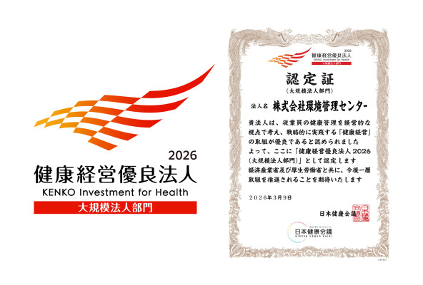 株式会社環境管理センター(本社:東京都八王子市 代表取締役社長:水落憲吾、以下「当社」)は、このたび「健康経営優良法人2026(大規模法人部門)」に認定されました。なお、本認定は昨年に引き続きの取得となります。