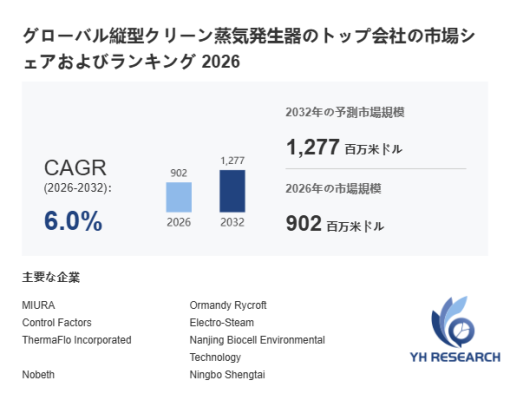 本記事は、YH Researchが発行したレポート「グローバル縦型クリーン蒸気発生器のトップ会社の市場シェアおよびランキング 2026」 を紹介しています。
