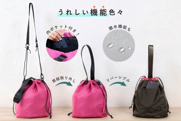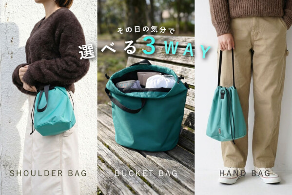 ショルダー、巾着、バケットバッグの3WAY