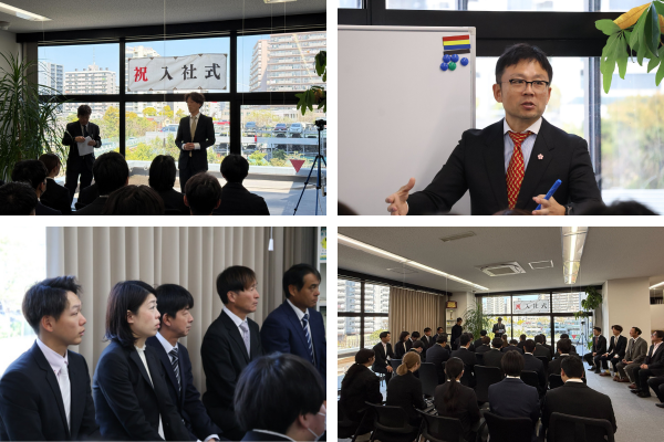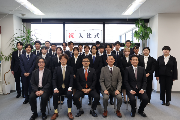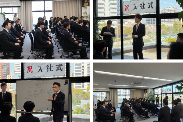 入社式はグループ企業の株式会社ルーセントアスリートワークス、明日香野(明日香食品株式会社)、株式会社ウェッジホールディングス、常盤ゴム株式会社と合同で開催。