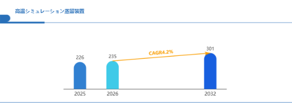 Global Reports調査チームの最新レポート「グローバル高温シミュレーション蒸留装置市場規模、主要企業シェア、ランキング分析レポート【2026年版】」によると、2026年の235百万米ドルから2032年には301百万米ドルに成長し、2026年から2032年の間にCAGRは4.2%になると予測されています。