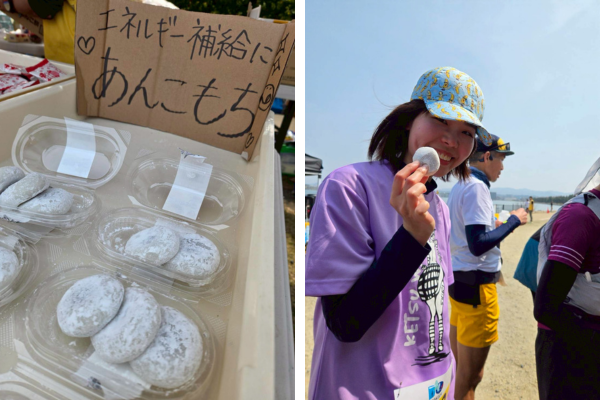 明日香野はエイドステーションにて「プチ白あんこ餅」を提供。周回コースの特性を活かし、多くのランナーにご賞味いただきました。「おかわりしてもいいですか?」と多くの方からお声がけいただくなど大変喜んでいただけました。