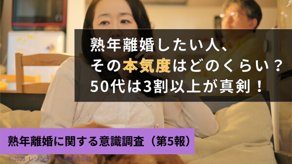 今回の第5報では、熟年離婚を望む人の『本気度』と 『熟年離婚を思いとどまらせる障壁は何か』をテーマに熟年離婚に対する意識を深掘りしていきます。