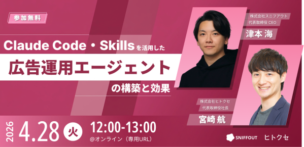 本取り組みの具体的な内容や、Claude Code・Skillsを活用した広告運用の未来について解説する特別ウェビナーを開催いたします。
